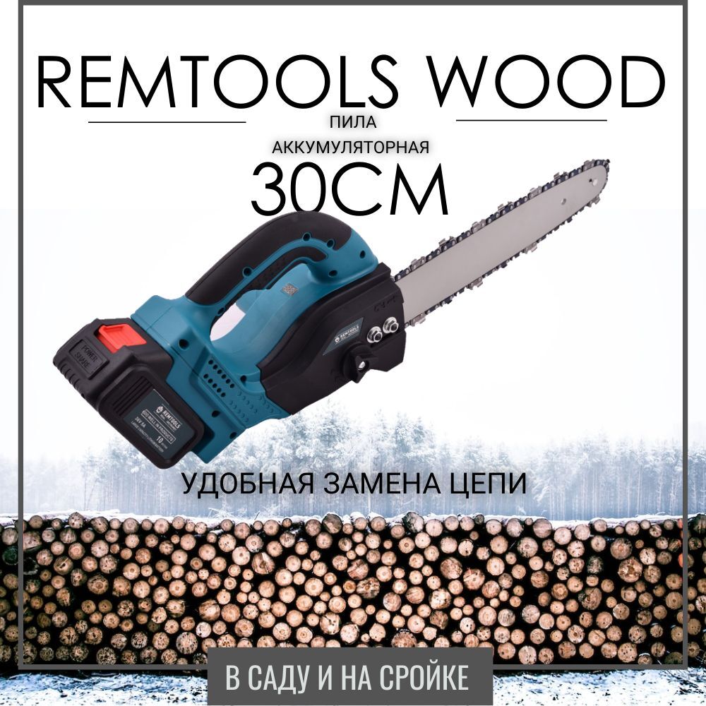 Каталог Электропила цепная аккумуляторная Автоматическая смазка цепи Remtools wood"12