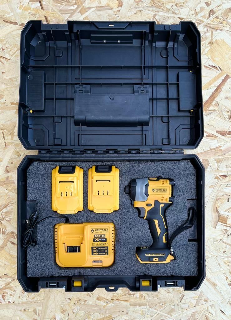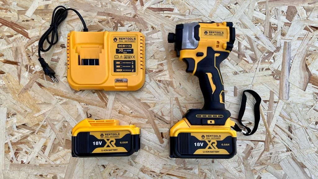аш ударный шуруповерт Remtools 18V- это инструмент, который обеспечивает быстрое и эффективное затягивание винтов в твердые материалы, такие как дерево, металл и бетон.